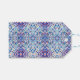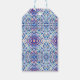 A stunning gift tag adorned with a intricate geometric pattern in shades of blue, pink, and white, featuring delicate floral accents. Perfect for adding a touch of elegance to your gift wrapping with its eye-catching design.