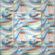 A dynamic abstract pattern of flowing waves composed of tiny triangular elements in vivid red, blue, and green hues, creating a sense of motion and depth—perfect for modern fabric patterens.