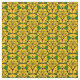 Vibrant African print fabric patterned with golden yellow, green and red circles and leaves