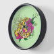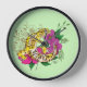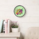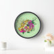 Vibrant Green Playful Leopard Gecko Floral Clock