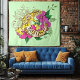 Vibrant Green Playful Leopard Gecko Floral Tapestry