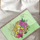 A vibrant yellow leopard gecko curls gracefully among bold fuchsia blossoms and lush green leaves, set against a fresh green background with delicate botanical henna linework. This playful yet elegant illustration celebrates nature, color, and personality. A joyful blend of flora and fauna that adds character and charm.