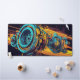 Supercharge your gaming setup or creative workstation with a desk mat that radiates pure adrenaline. This massive mousepad showcases a phenomenal, high-octane illustration of an abstract mechanical engine part. Rendered in a gritty, industrial pop-art style, the design explodes with vibrant cyan and orange hues against a deep black background. The diagonal motion lines and grunge splatters give the artwork an incredible sense of speed and raw kinetic energy.