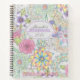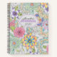 This is a customizable notebook that exudes a sense of personal style and creativity. The cover is adorned with a vibrant and intricate floral print, featuring a medley of flowers and leaves in various shapes, sizes, and colors. The colors range from soft pastels to vibrant hues, creating a visually appealing contrast against the light background. The floral print is detailed and intricate, adding depth and interest to the overall aesthetic. Amidst the blossoms, an oval-shaped label takes center stage. The label, written in elegant cursive, reads “Alexandra’s Journal 20XX”, adding a personal touch to the notebook.