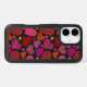 here is a vibrant and lively pattern otterbox phone case featuring various heart shapes on a black background. The hearts come in different sizes and shades, including pink, red, orange, and purple. Each heart boasts its own unique design, such as stripes, dots, or crosshatch patterns.