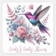 Vibrant Hummingbird And Pink Blooms Baby Shower Square Sticker