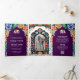 Vibrant Indian Folk Art Elephant Aubergine Wedding Tri-Fold Invitation