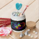 Vibrant infinity with rainbow butterfly on black candy jar