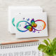 Vibrant infinity with rainbow butterfly on black envelope