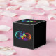 Vibrant infinity with rainbow butterfly on black favor boxes
