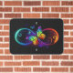 Vibrant infinity with rainbow butterfly on black metal sign