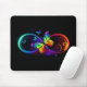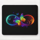 Vibrant infinity with rainbow butterfly on black mouse pad