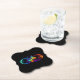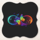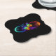 Vibrant infinity with rainbow butterfly on black paper coaster