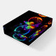 Vibrant infinity with rainbow butterfly on black paperweight