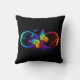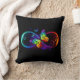 Vibrant infinity with rainbow butterfly on black throw pillow