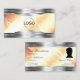 Vibrant Ivory Peach with Silver Borders Logo Photo Business Card