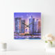 Vibrant Miami Skyline Sunrise Square Wall Clock