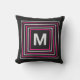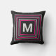 Vibrant Modern Simple Square Monogram Pink & Black Outdoor Pillow
