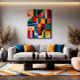 Feel the energy of a festival of colors and shapes. This work is a celebration of vitality, where every geometric shape and vibrant color dance in harmony. The touch of joy and modernity your space needs.