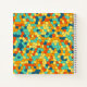 Vibrant mosaic pattern composed of various colored shapes, primarily hexagons and polygons. The colors include bright shades of orange, yellow, turquoise, and blue, creating a lively and energetic visual effect.