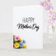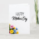 Designed with a bright white background, this Mother’s Day card keeps the layout simple while letting the message and flowers do the talking. “Happy Mother’s Day” appears in flowing black lettering across the upper center, standing out clearly against the open space. The generous white area around the words feels like a quiet pause, giving the greeting room to breathe and read easily. In the lower-left corner, a clustered bouquet of daisy-like blooms leans upward as if being offered with gentle affection ❤️. The petals mix sunny yellow, soft blue, and rich pink tones, with green leaves tucked behind for depth and a fresh, caring look. The lighting is even and bright, making the colors look lively without any heavy shadows, like a calm morning scene 🌼. The flower cluster sits low and left, with several blossoms angled outward and upward, their layered petals and leafy stems clearly visible.