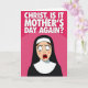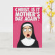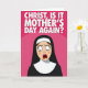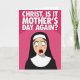 Designed with a punchy pink backdrop, this card grabs attention with a saturated fuchsia field and gentle wave-like shifts in tone. Across the upper area, a short declaration sits in large white capital letters, centered and spaced to feel like it’s speaking straight to the reader. Below, a cartoon-styled figure in traditional religious clothing stands out in a deep black robe with a bright white head covering and collar. The light-toned face has rosy cheeks and long lashes, and the wide eyes lock forward as if caught in an awkward moment that’s funny and a little too familiar ❤️. An open red oval mouth adds to the startled look, like a gasp that could just as easily be a surprised laugh shared between close friends. The simple shapes and strong contrast keep everything focused on that expressive face and the message above, with a cheeky, affectionate edge 🌼. The figure is centered in the lower half against the pink background, with the white text anchored at the top.