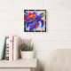 This stunning square wall clock showcases a vibrant, rainbow-colored turtle swimming gracefully amidst colorful tropical flowers. Its artistic design, with bold hues of pink, blue, yellow, and orange, creates a lively and decorative timepiece that brings the beauty of the ocean and nature-inspired charm to any room.