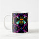 Vibrant Neon Honeybee with Abstract Hexagonal Coffee Mug