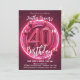 Vibrant Neon Pink 40th Birthday with Balloons Invitation