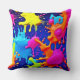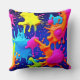 Vibrant Neon Splashes on Dark Canvas Throw Pillow