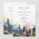 Announce your wedding in style with this vibrant "Save the Date" card featuring a watercolor illustration of the New York City skyline. The design captures iconic elements like the Statue of Liberty, Empire State Building, and classic NYC taxis against a lively, colorful sky. The blend of bright hues, including shades of purple, yellow, blue, and pink, adds a modern, artistic touch that perfectly represents the city’s energy. Elegant typography in purple and black complements the urban scene, making this card an ideal choice for a chic destination wedding in New York.