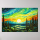 This creative poster features an illustration of quite colorful sunset, deep in the forest after dark. Please feel free to customize all the available options as you wish. #Family #Teens #Teenagers #Whimsical #Fantasy #Full #Moon #Stars