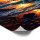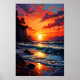 Immerse yourself in the beauty of this AI-generated sunset art poster print, where fiery reds, oranges, and deep blues blend seamlessly across a coastal landscape. This captivating piece showcases the serenity of waves crashing against the shoreline as the sun dips below the horizon, creating a warm and tranquil atmosphere. Perfect for enhancing any living room, office, or bedroom space, this vivid seascape print evokes the peace and beauty of nature, making it an ideal gift or home decor piece. This artwork offers a fresh perspective on nature's most mesmerizing moment. Its unique composition and color palette bring depth to the art, making it stand out among other coastal prints. Whether you're seeking decor for a beach house, adding to an art collection, or searching for a gift for nature lovers, this sunset print will leave a lasting impression. Perfect for celebrating events like birthdays, anniversaries, housewarming parties, or simply brightening up any space.