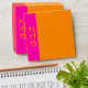 Disco vibes make a splash in the mailbox with this vibrant orange and hot pink envelope personalized with your monogram on the front and return address on the back flap. Bright and Colorful.