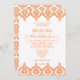 Having your Vibrant Orange And White Damask Wedding Invitation match the theme of your party is a great detail that your guests will appreciate. The thoughtfulness of a consistent party theme is often appreciated and can show your guests that you can host a cohesive event.