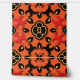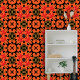 This wallpaper features a bold and vibrant pattern with floral motifs. The primary color scheme is orange and black, creating a striking contrast. The flowers are outlined in black against an orange background, and each petal exhibits intricate layering. Smaller accent details in white and grey add depth to the design.