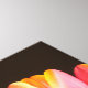 This wrapped canvas offers a close up photograph of a vibrant yellow edged orange tulip close up floral photograph.