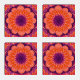Vibrant Orange with Purple Floral Kaleidoscope Coaster Set