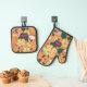 Vibrant Orange Yellow Floral Kitchen Custom Name Oven Mitt & Pot Holder Set