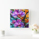 Bright orchids showcase intricate patterns and vivid colors, contrasting with a colorful abstract background that enhances their beauty.