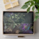 This vibrant design showcases a stunning purple and blue peacock surrounded by blue and purple flowers on a dark background. Perfect for decoupage art, paper crafts, or wrapping gifts.
