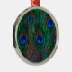 Vibrant Peacock Feathers Etching Style Decor Metal Ornament
