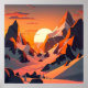 Beautiful art show us when the horizon casting an orange glow across the sky ,a majestic snow-capped mountain stands high in the distance.