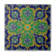 This tile is reproduced from an original 18th-19th century tile. The design is a full repeat and can be used alone or in multiples to create a large patterned area. Brilliant colors of indigo, turquoise, gold, and green. Nice enough to frame and hang on a wall, use as a wall tile, trivet, coaster, or place it on a small easel as an object d'art. Also makes great fireplace surrounds or accent tiles for backsplashes and wall tiles in kitchen, bathroom, or shower. Available in 4.5 and 6 inch tiles as well as other items.