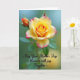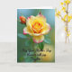 Designed with a close-up view of a single yellow flower centered in the frame, this card highlights petals that fan out from a warm golden-orange center like a gentle embrace ❤️. Thin fuchsia edging traces many of the petals, adding a soft contrast that feels like a caring touch between loved ones. In the upper left, a smaller bud sits tightly curled, angled toward the main bloom as if leaning in with quiet affection 🌼. The background fades into a smooth blur of muted greens and cool blues, suggesting a calm garden without distracting from the flowers. Near the bottom, the message “May Your Mother’s Day blossom with joy Daughter -” is placed in a flowing style, set in a dark tone that stands out clearly against the lighter backdrop. The lettering sits beneath the blooms, leaving the floral scene open and airy above it. Light falls gently across the petals, bringing out velvety texture and tiny details around the center. The main blossom remains sharply focused while the surrounding colors dissolve into soft, rounded shapes behind it.