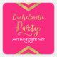 This elegant square sticker features a chic geometric chevron and the word "Bachelorette Party" in faux gold against a vibrant pink background. Check out matching invitations and items here http://www.zazzle.com/collections/modern_faux_gold_chevron_celebration_collection-119531050277382712?rf=238364477188679314