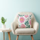 Vibrant Pink Floral Pattern with Lush Greenery Throw Pillow