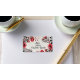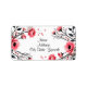 A beautifully designed label featuring vibrant pink flowers and delicate leaves. The flowers are artistically layered, creating a three-dimensional effect.