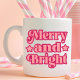 Vibrant Pink Merry and Bright Christmas giant coffee mug