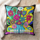 Vibrant Psychedelic Flowers in a Vase Throw Pillow